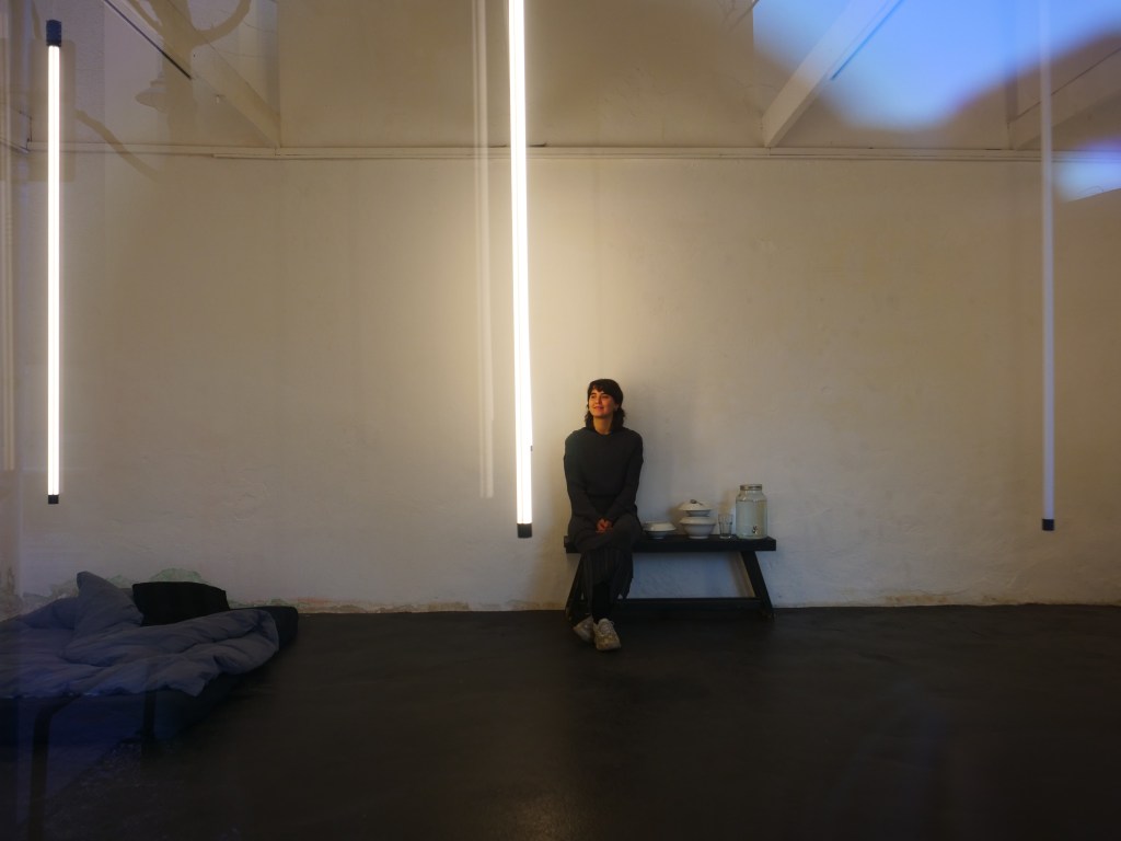 The performance „Illuminated Nothing“ focuses on doing nothing by having the performer Emilia Vogt spend 24 hours in a room that is publicly visible. Doing nothing is defined by basic life-sustaining needs such as breathing, sitting, lying down, standing, eating, drinking and using the toilet; all active activities are consciously avoided.